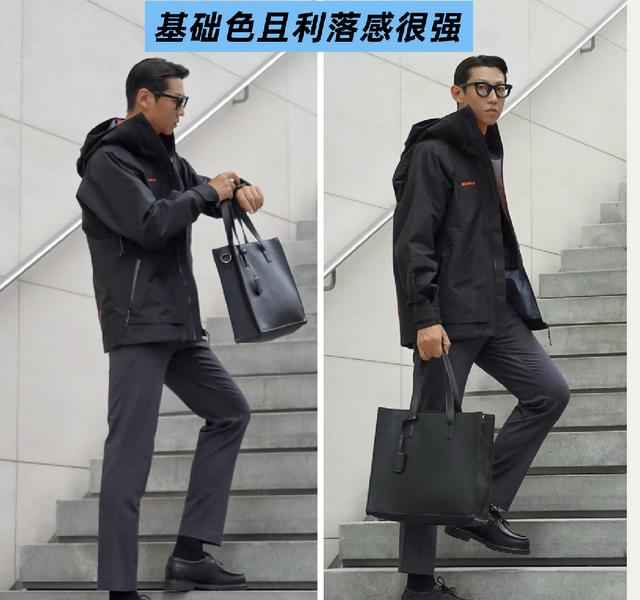 这套搭配就像瑞士军刀一样多功能:早上陪你挤地铁,下午帮你挡风遮雨,晚上随便搭在椅子上,依然显得有品位。