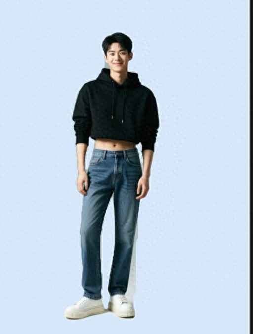 穿搭的第一步,是把握好整体轮廓。很多男生误以为穿宽松衣服能遮肉,结果反而显得更矮胖。聪明做法是遵循“上短下长”原则:选一件长度到腰线的短款上衣,比如夹克或T恤,能瞬间拉长下半身比例。高腰裤也是神器,男士穿剪裁利落的高腰直筒裤,把上衣塞进去,手动制造高腰线,腿长效果立竿见影。这招在明星穿搭中很常见,简单又有效。
