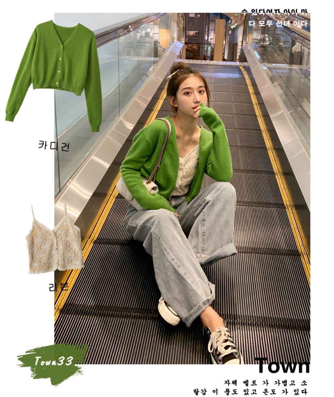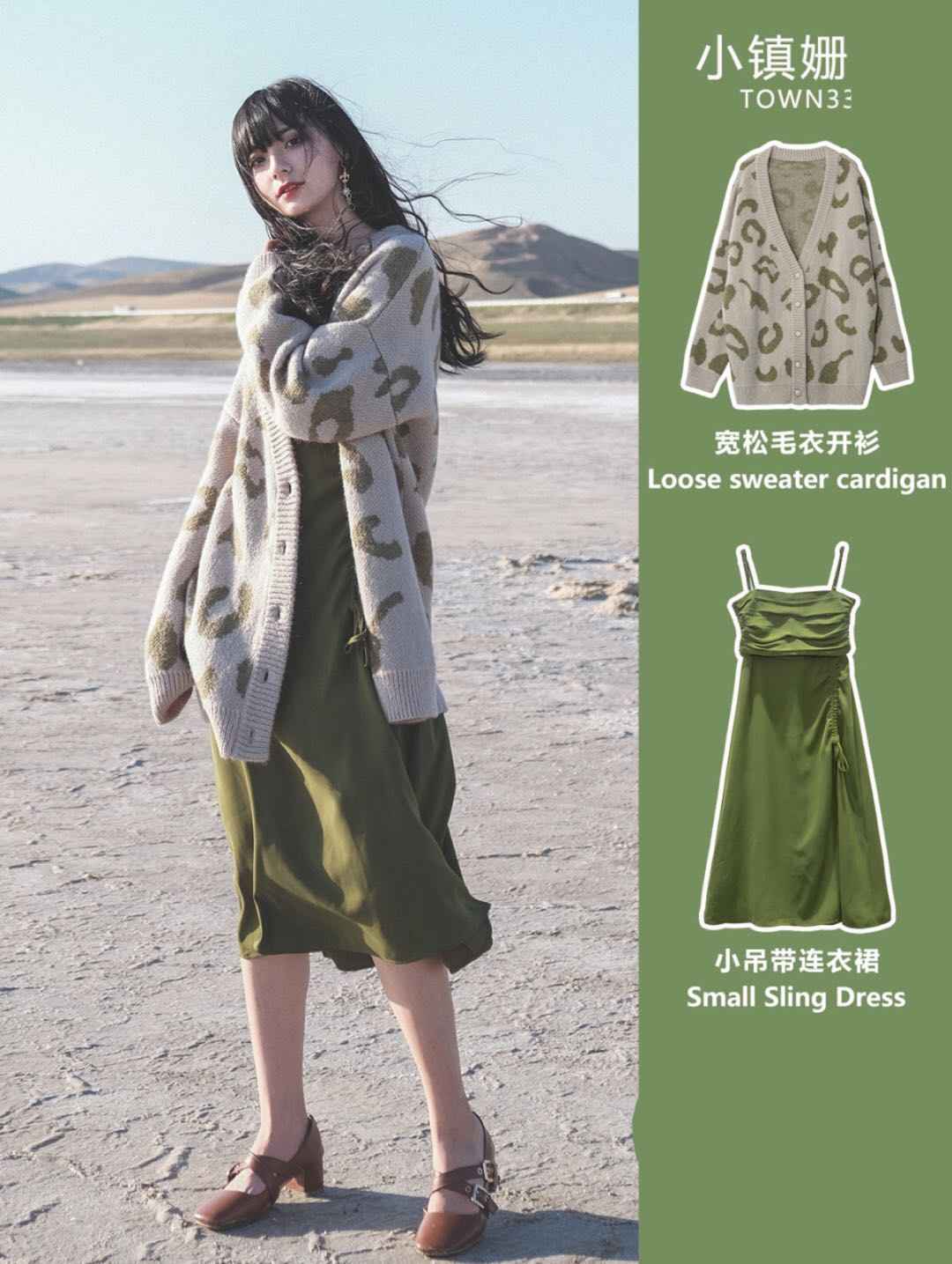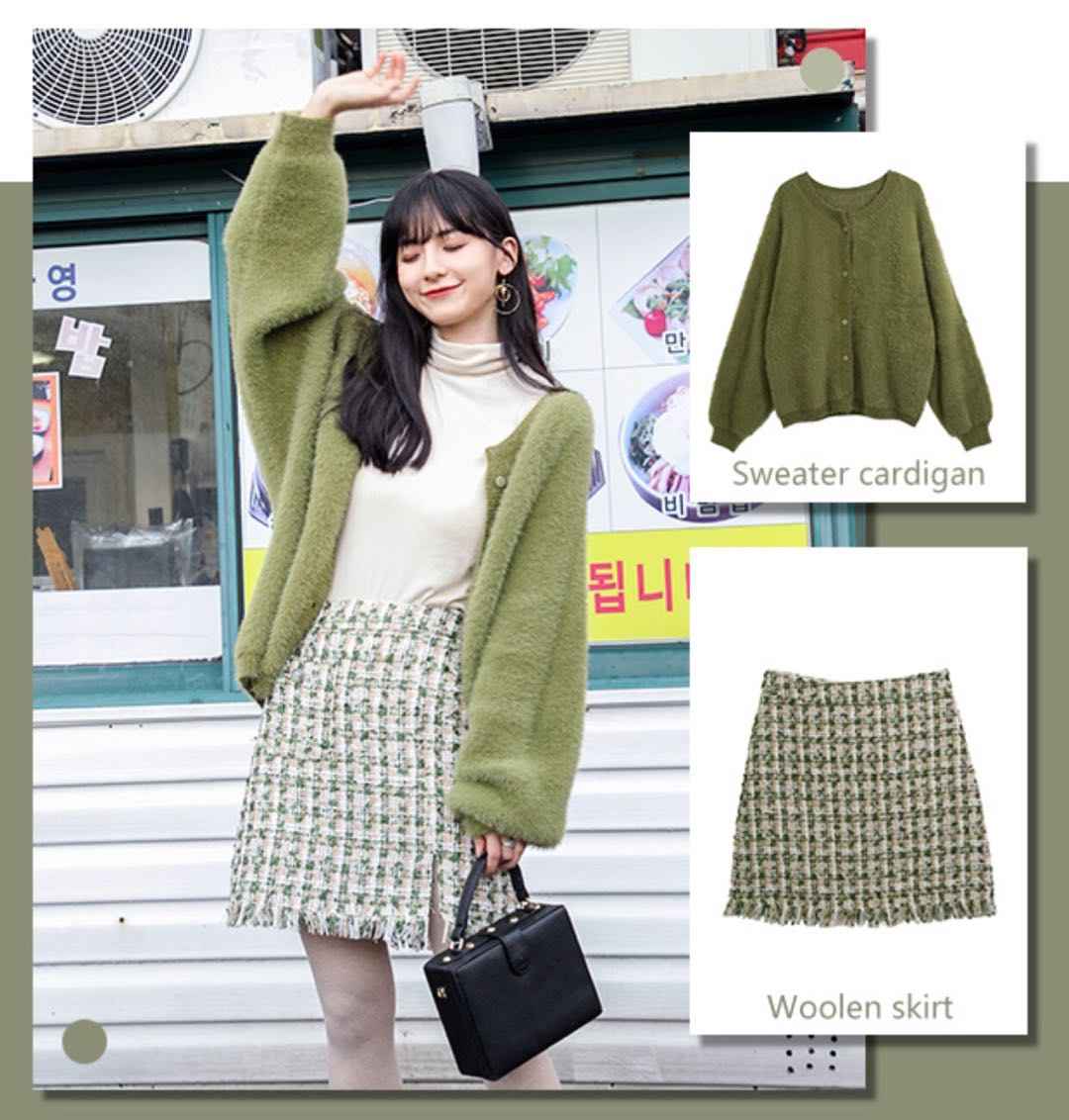 这抹甜美请收下!独特显白的绿色,天冷加开衫,让你在人群中最出挑