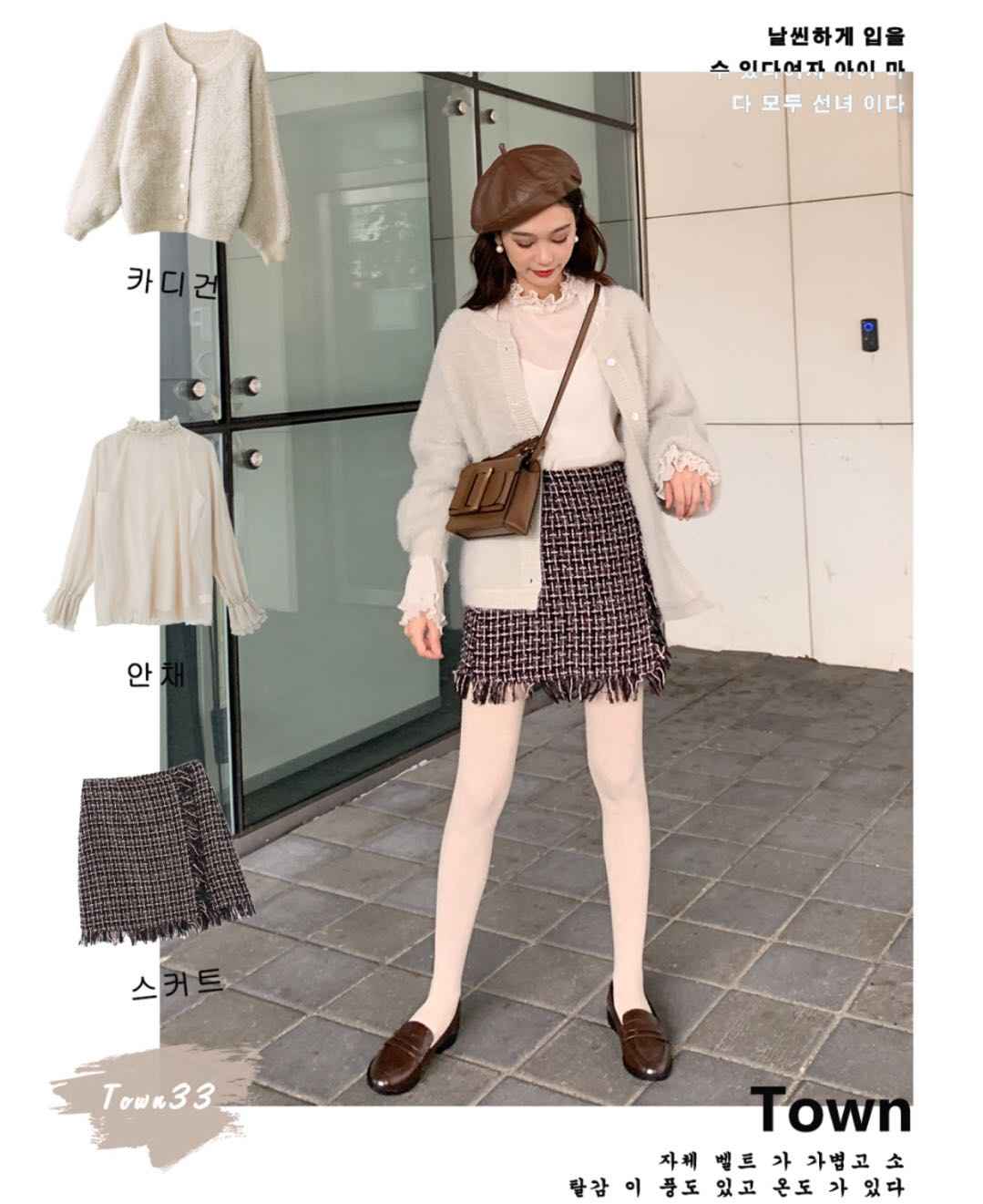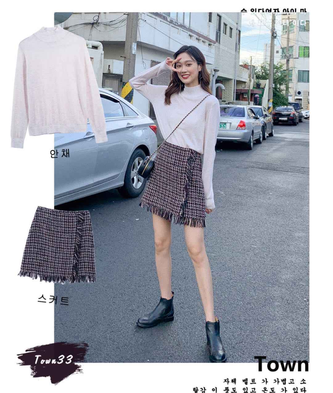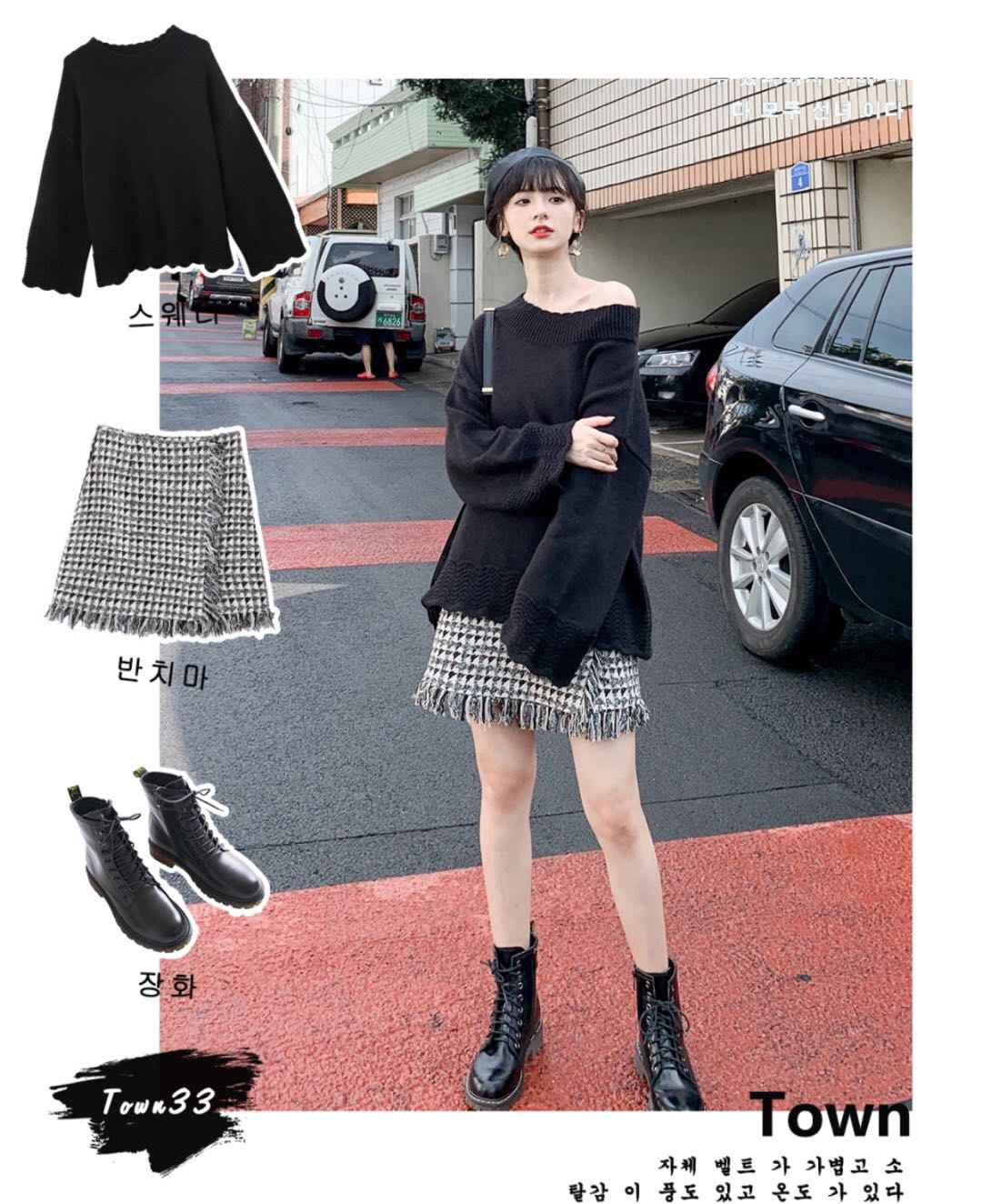 毛衣 + 半裙 + 马丁靴,基础职场套装,OL必备穿搭公式