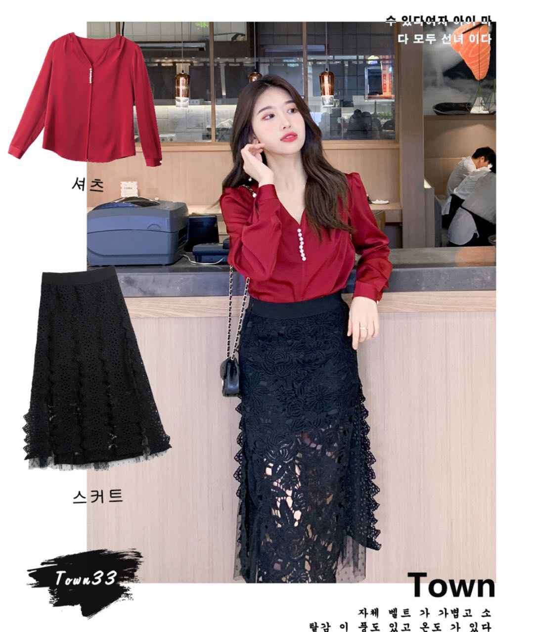 宽松衬衫上衣 + 黑色半裙(适合腿粗的姐妹)