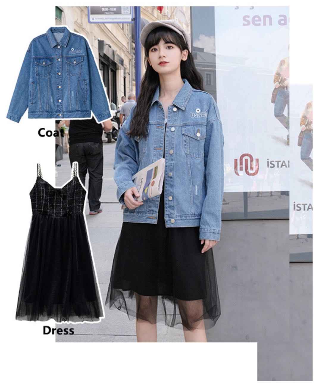 吊带纱裙 + 牛仔外套,经典组合,上学上班度假都能穿