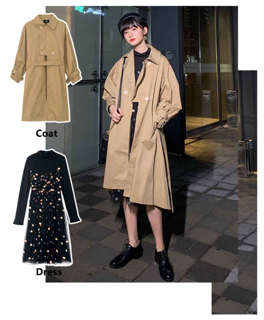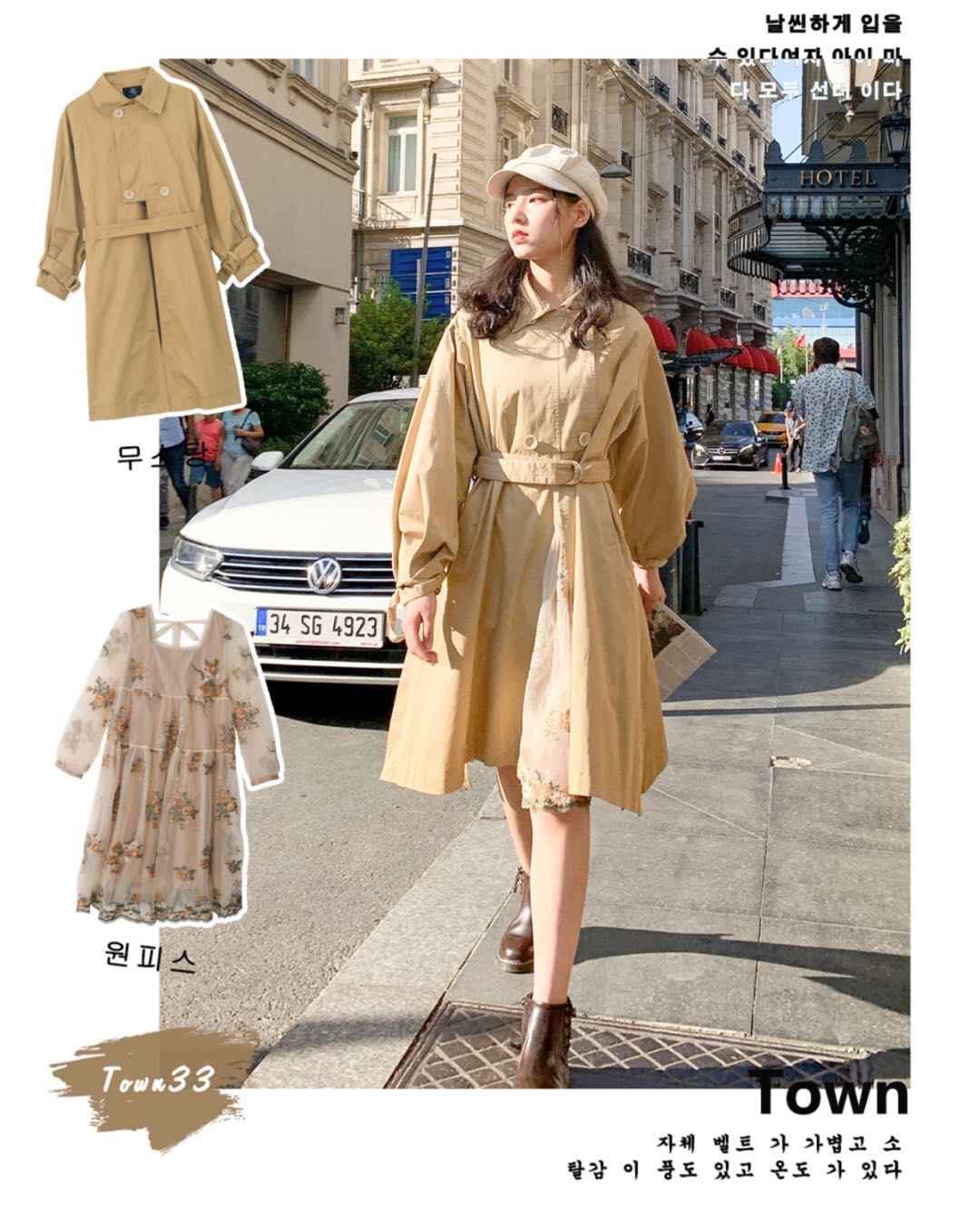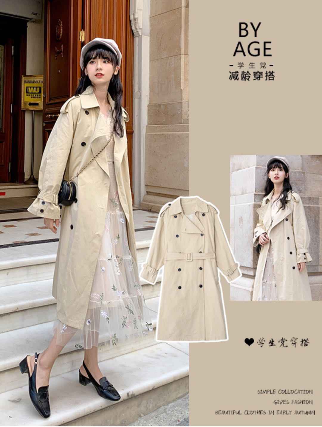 风衣 + 连衣裙,文艺风外套配裙子遮肉显瘦,不挑人还高级