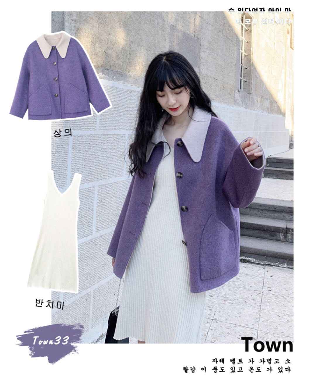 紫色呢子大衣 + 吊带针织,针织吊带显瘦,A字大衣配糯紫色超特别