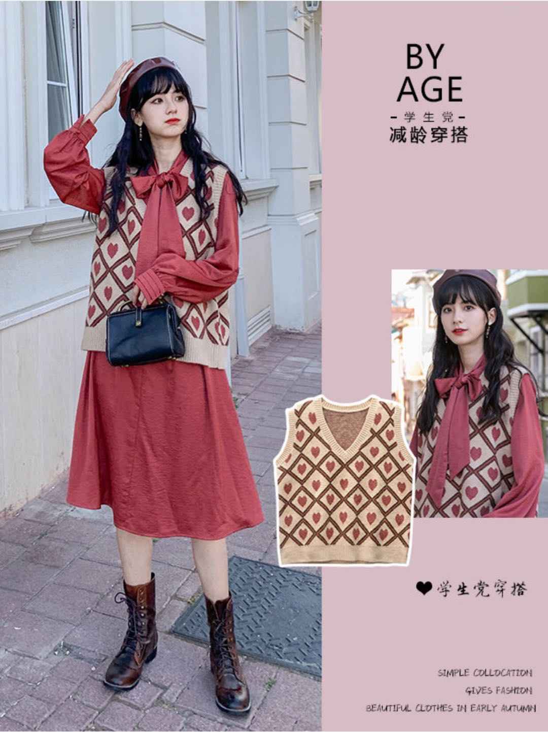 马甲 + 连衣裙,粉红色系青春爆棚,马甲减龄神器必入
