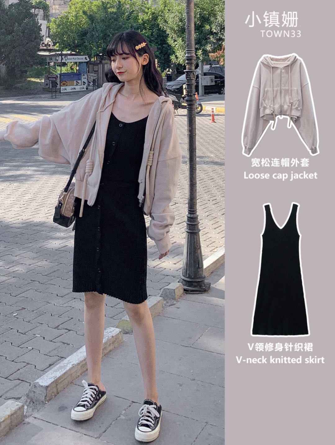oversize版型配连衣裙,拉高比例遮肉显瘦