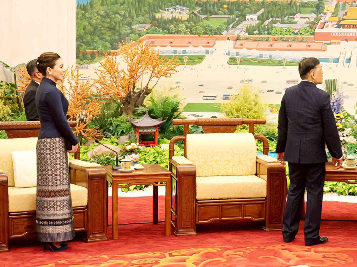 这次泰王访华,苏提达在晚宴上大放异彩,成为最耀眼的女眷。她的气质和穿搭秒杀全场,旁边的人都黯然失色。