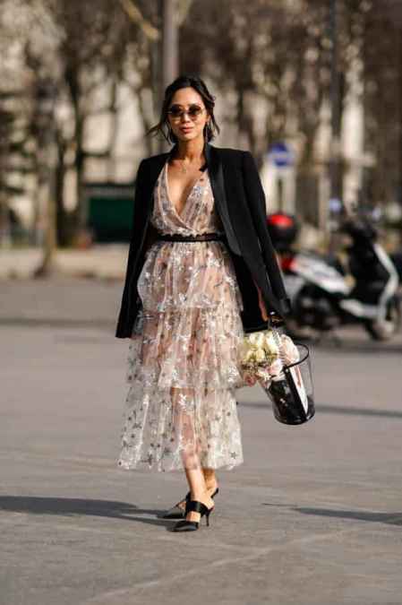 剩下的沙漏型和倒三角型就好办多了。沙漏身材曲线傲人,穿裹身裙或者收腰明确的X型连衣裙就是锦上添花,大大方方展示你的优势-1。倒三角身材肩宽,就要避免任何加宽肩膀的设计(比如泡泡袖、垫肩),多穿V领、露背的裙子,把视觉重心往下拉,平衡上下比例-1。