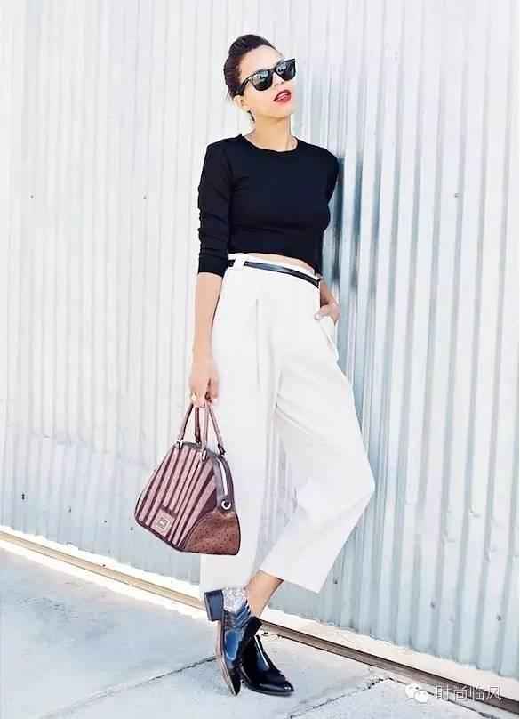 短款Crop Top+高腰白裤子:大胆展现身材比例的穿法。一件精致的短款上衣,搭配高腰白色喇叭裤或阔腿裤,最大限度拉长腿部线条,显得人高挑又有型-5。