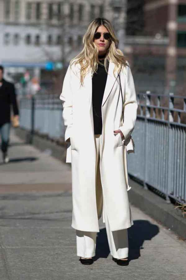 聊完了鞋子,再唠叨几句让整体搭配更完美的细节。白色大衣虽然美,但也“娇气”,保持它的整洁挺括是第一要义,不然再好的搭配也显邋遢-9。