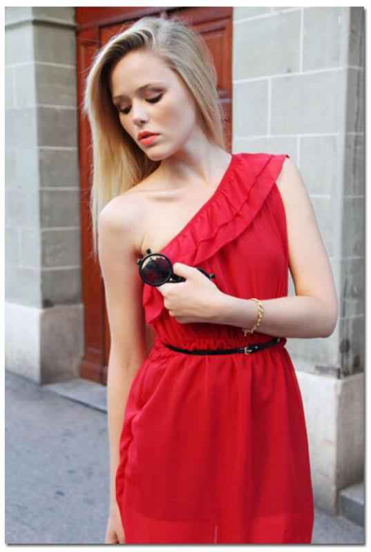 视觉重心上移:想方设法让别人第一眼看到你的上半身。泡泡袖、荷叶边、一字领、鲜艳色彩或醒目图案的上衣都是绝佳选择-2-9。一个小垫肩也能神奇地拉平肩线,让头肩比更协调-9。