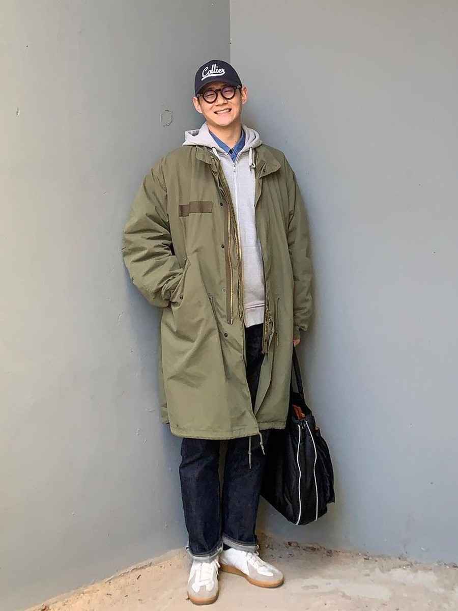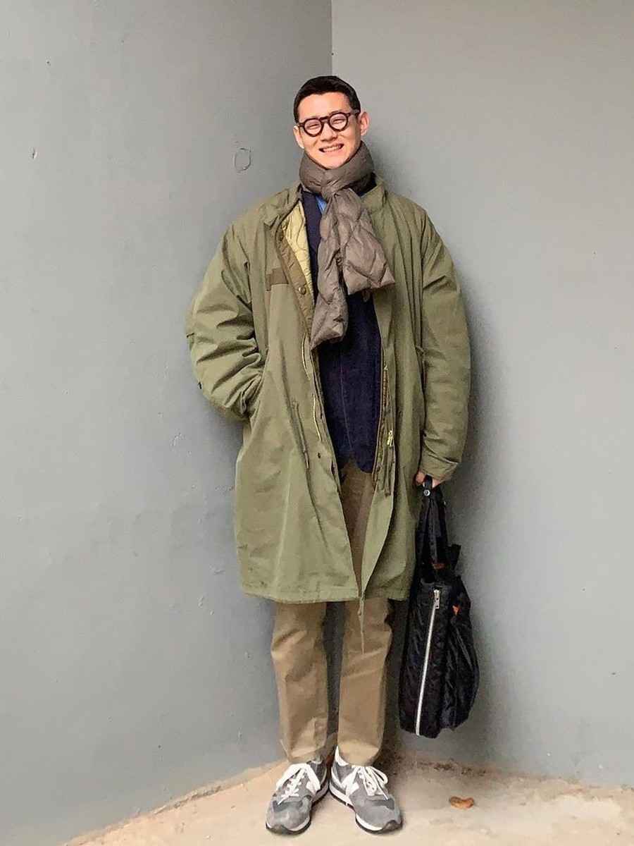下身裤子选择多,比如简约牛仔裤、卡其色工装裤或军绿色直筒裤,都不会抢镜,还能让造型更得体,穿出干练感。