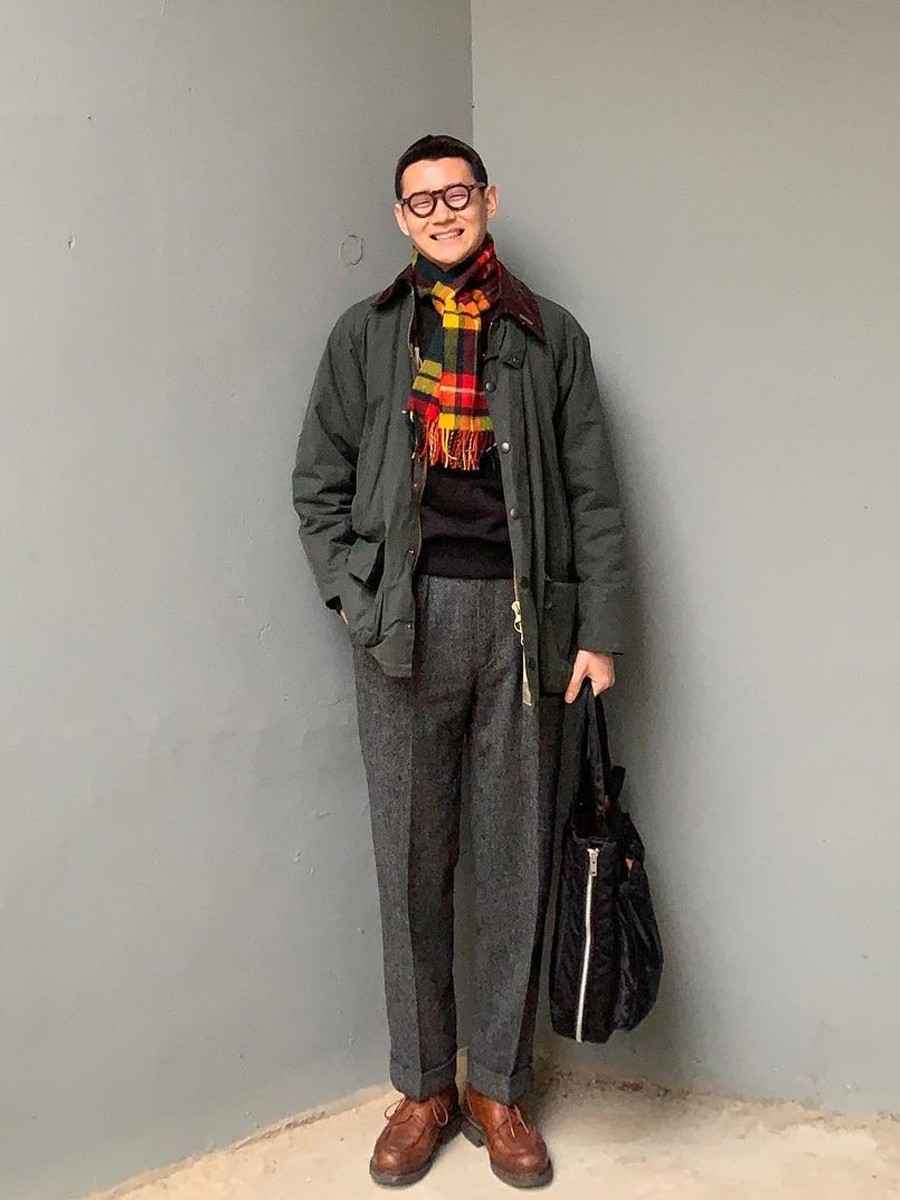 围巾也有讲究:短款围巾更显绅士风度,适合配西裤、皮鞋等精致穿搭,丰富上半身。
