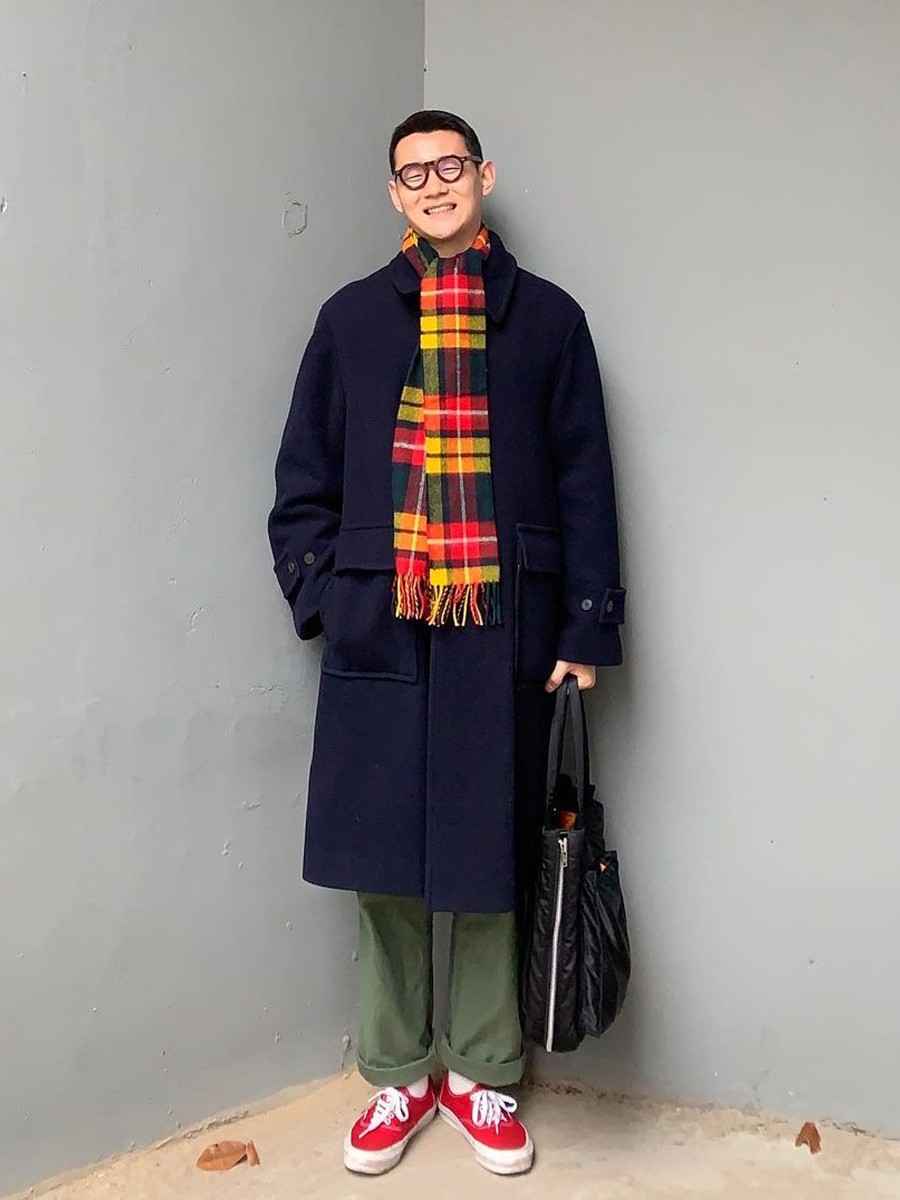 冬季穿深色系绝对安全,用“上繁下简”法,深色造型也能更时髦。上衣简单叠穿出层次,下身配条纯色裤子,稳重又出彩。