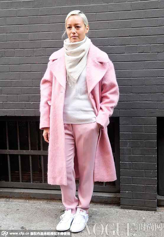 秋冬季节:冬天的粉色大衣,可以搭配炭灰色的上衣和裙子套装,这种暗粉与深灰的组合,特别温柔,还带着一种沉稳的感觉-9。或者像时尚博主那样,用粉色高领毛衣作内搭,外面穿一件红色的大衣或羽绒服,色彩浓郁又温暖,非常有节日氛围-10。