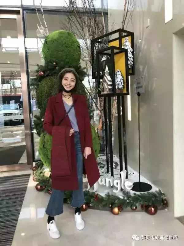 搭配灵感:青岛温度接近零度,但穿一整套保暖内衣就不怕冷。红色长款大衣超有圣诞氛围,小白鞋能提亮整体,同色系围巾既保暖又加分。室内脱掉外套,V领毛衣和喇叭裤的组合特别显温柔~