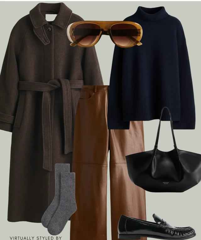 大衣长度最好到小腿中间,皮裤选九分款,露点脚踝,既保暖又不显臃肿。