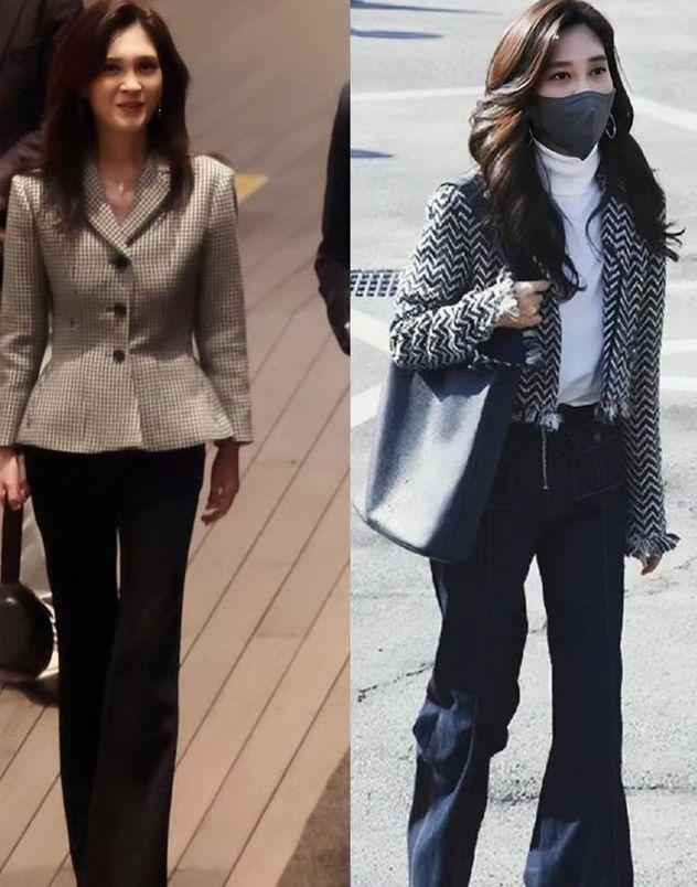 如果你做到这两点,再看即使衣服材质有差距,但同类型衣服穿在普通人身上和李富真身上效果差不多,都会显得人利落高级。