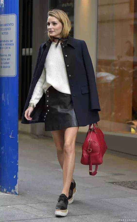 选皮衣也有讲究。皮裙已经很有存在感了,皮衣就最好选哑光质感的,避免全身都亮闪闪-8。版型上,短款最能优化比例,衣摆卡在腰最细的地方,和皮裙的高腰线无缝衔接,腿长瞬间一米八-8。内搭一定要从简,一件贴身的纯色T恤或者修身针织衫就是最佳选择,给皮衣和皮裙这对主角留足发挥空间-8。