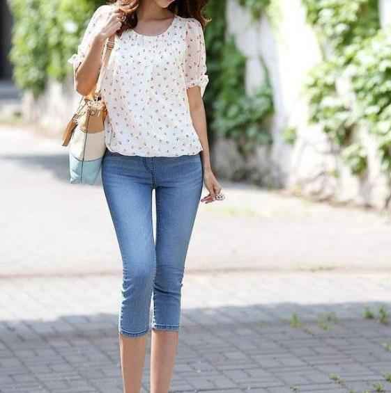 问: 梨形身材,屁股和大腿肉多,敢穿浅色牛仔裤吗?该怎么配上衣?