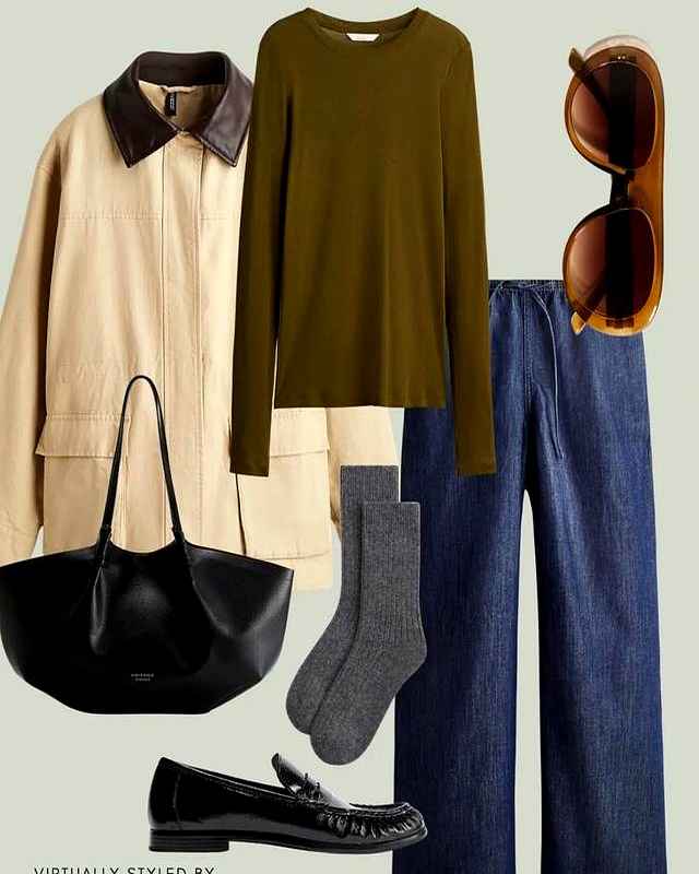 组合: 工装风外套 + 直筒牛仔裤 + 托特包