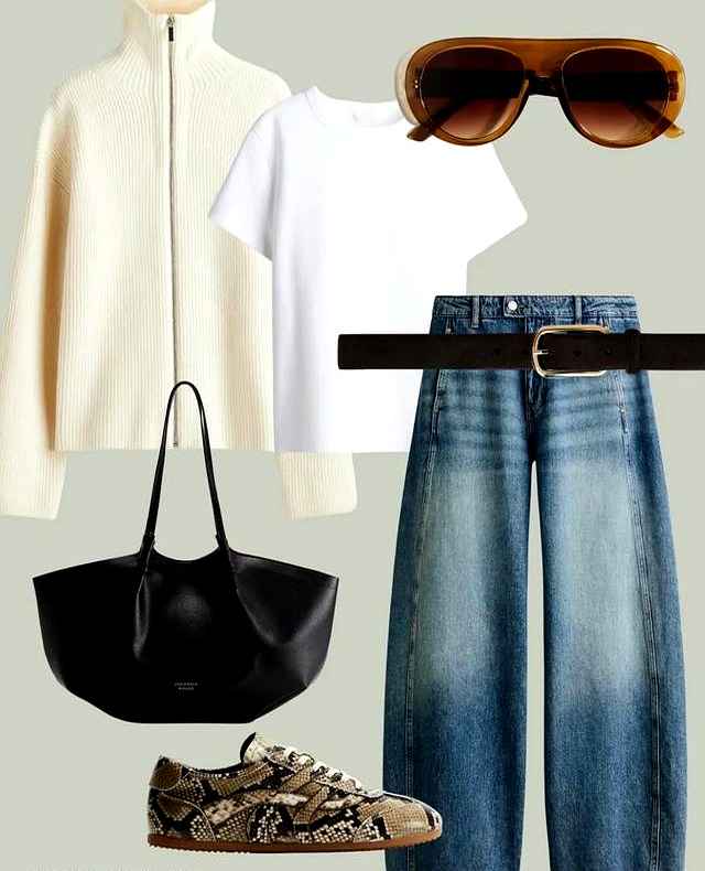 解读:这套的关键是利落。外套敞开穿,内搭简单白T或半高领,袖子随意挽起,帅气感扑面而来。